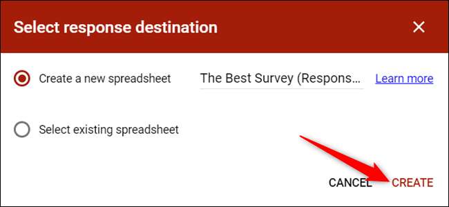 Klik vervolgens op "Maken" om een nieuwe spreadsheet te genereren waarin u al uw antwoorden kunt opslaan.