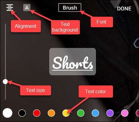 Op het scherm Bewerkingsscherm heeft u de mogelijkheid om weer muziek toe te voegen. Je kunt ook tekst toevoegen. Tik op "Tekst" en u krijgt een heleboel opties voor hoe de tekst eruit moet zien. Selecteer "Gereed" wanneer u klaar bent.