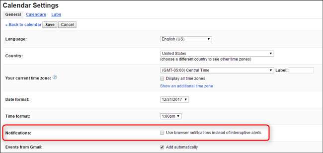 Google Agenda genereert standaard een nieuw pop-upvenster voor evenementmeldingen, wat eigenlijk best vervelend is. Deze pop-up kaapt het scherm, dus als u bezig bent met iets anders, kan dit zeer storend zijn - in feite worden dit "onderbrekende waarschuwingen" genoemd.