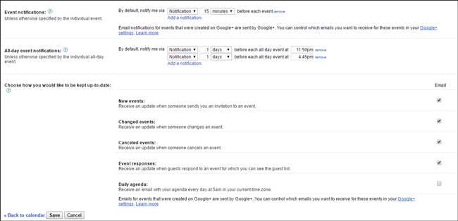 Deze zijn vrij eenvoudig, maar het is de moeite waard om te vermelden dat u kan verwijder desgewenst alle meldingsinstellingen en beheer vervolgens elke nieuwe gebeurtenis indien nodig. Dit kan handig zijn als u slechts af en toe meldingen nodig heeft voor gebeurtenissen in een bepaalde agenda.