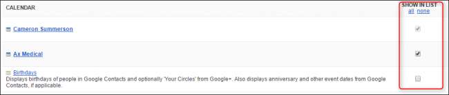 Klik op de knop ‘Agenda's’ en schakel vervolgens de optie ‘Weergeven in lijst’ uit voor de agenda die je wilt verbergen.