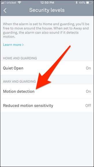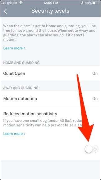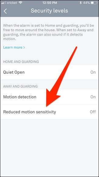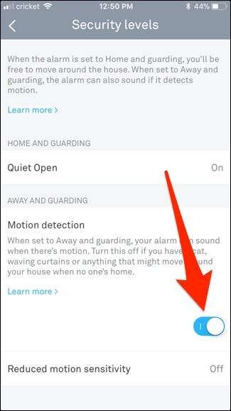 Het uitschakelen van deze instelling kan een goed idee zijn als u katten of andere dieren heeft die op meubels rondspringen en waarschijnlijk het alarm laten afgaan. Houd er echter rekening mee dat als u dit uitschakelt, bewegingsdetectie op alle beveiligingsniveaus volledig wordt uitgeschakeld.