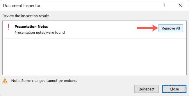 Na een moment zie je de resultaten die je laten weten dat de presentatienotities werden gevonden tijdens de inspectie. Klik op "Alles verwijderen".