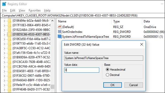 Deze hacks veranderen gewoon dezelfde instellingen die we hierboven hebben gewijzigd. Als u de hack 'Verberg OneDrive vanuit bestandsverkenner' uitvoert, wordt de waarde op 0 gezet, terwijl u met de hack 'Herstel van OneDrive naar bestandsverkenner' de waarde weer op 1 zet. En als u graag met het register speelt, is het de moeite waard om de tijd te nemen om te leren hoe u uw eigen registerhacks kunt maken .