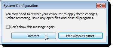 Er verschijnt een dialoogvenster waarin staat dat u uw computer mogelijk opnieuw moet opstarten om de wijzigingen door te voeren. Klik op Opnieuw opstarten om uw computer onmiddellijk opnieuw op te starten. Als u niet klaar bent om uw computer opnieuw op te starten, klikt u op Afsluiten zonder opnieuw op te starten.