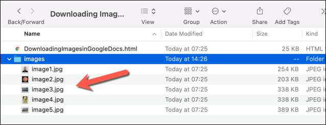 De geëxtraheerde inhoud toont uw document opgeslagen als een HTML-bestand, waarbij alle afbeeldingen afzonderlijk zijn opgeslagen in de map "Afbeeldingen". Gedownloade afbeeldingen uit een Google Docs-document worden geëxporteerd als JPG-bestanden met opeenvolgende bestandsnamen (afbeelding1.jpg, afbeelding2.jpg, enz.) In willekeurige volgorde.