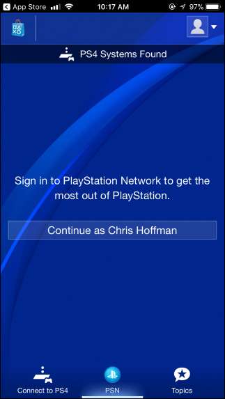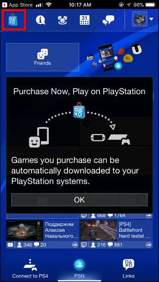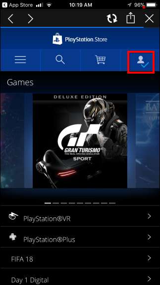 Start de app nadat je deze hebt geïnstalleerd en meld je aan met hetzelfde PlayStation Network-account dat je op je PlayStation 4 gebruikt. Tik op het PlayStation Store-pictogram in de linkerbovenhoek van de app.