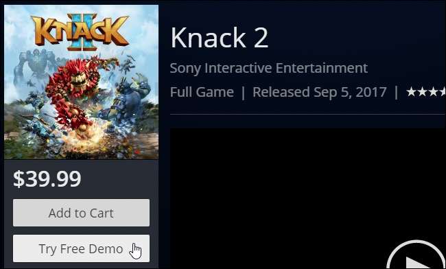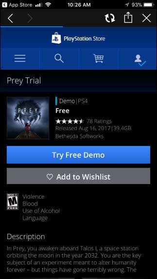 Als je een game wilt downloaden die je nog niet hebt gekocht (of eerder hebt gedownload, als de game gratis is), vind je de game hier in de PlayStation Store. Tik op de knop 'Toevoegen aan winkelwagentje' en koop de game of tik op 'Probeer gratis demo' als het een gratis demo is.