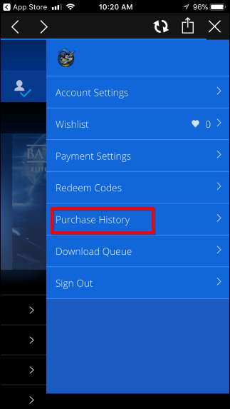 Als je een game wilt downloaden die je al hebt gekocht of die je eerder gratis hebt gedownload, tik je op het accountpictogram in de rechterbovenhoek van het scherm. Tik op "Aankoopgeschiedenis" in het menu dat verschijnt.