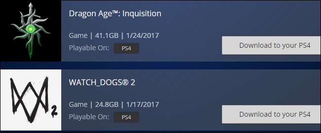 Blader door de games waartoe je toegang hebt en tik op de knop "Downloaden naar je PS4" voor alles wat je wilt downloaden. Je PS4 zal ze automatisch downloaden.