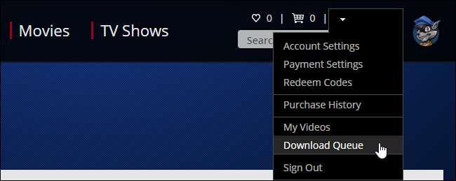 Om uw downloadwachtrij te bekijken, klikt u op uw accountnaam in de rechterbovenhoek van de pagina en selecteert u 'Downloadwachtrij'.