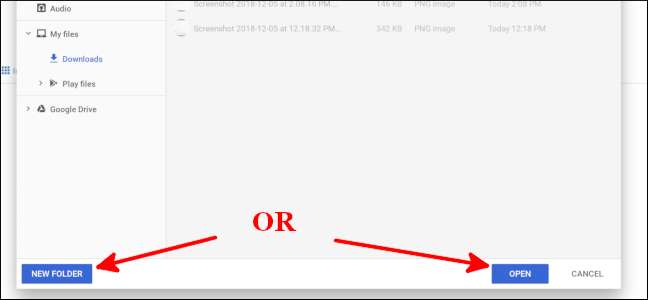 Hierdoor wordt de map Downloads in uw Chrome-bestandsbrowser geopend. Selecteer "Open" om dit te gebruiken als uw JSTorrent-downloaddirectory of selecteer "Nieuwe map" als u iets anders wilt.