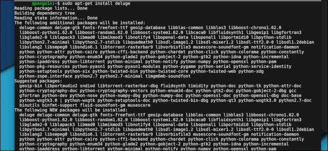 Typ "sudo apt-get install deluge" en druk op Enter. Druk vervolgens op "Y" en vervolgens op Enter om door te gaan met de installatie.