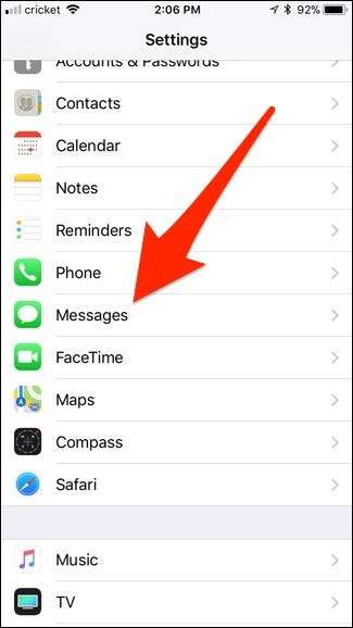 Houd er echter rekening mee dat alle berichten die worden verwijderd, voor altijd verdwenen zijn. Dus als u uw berichten wilt bewaren of bepaalde berichten voor altijd wilt bewaren, wilt u ze waarschijnlijk niet automatisch laten verwijderen. Om deze instelling te wijzigen, open je de app Instellingen en tik je op 'Berichten'.