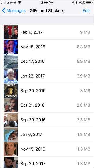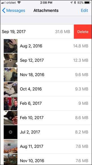Dit geeft je een lijst van elke foto, video en andere bijlage die de Berichten-app heeft opgeslagen van al je gespreksdiscussies, en deze is eerst op volgorde van grootste formaat.