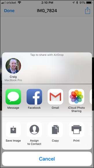 Van daaruit kunt u het via AirDrop naar een ander apparaat verzenden, per e-mail verzenden, opslaan in een cloudopslagservice en meer.