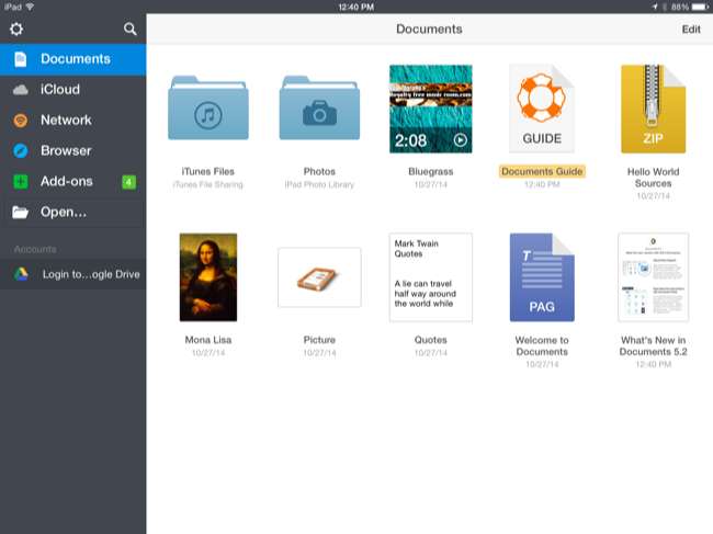 : Readdle's Documenten-app is gepolijst en gratis. Het biedt een bestandssysteem waartoe u in elke app toegang hebt, evenals een krachtige app met ondersteuning voor het bekijken van verschillende soorten documenten en mediabestanden. Het kan ook synchroniseren met