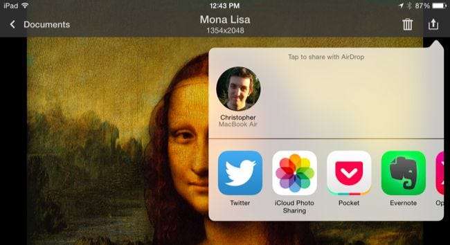 Dergelijke apps bieden toegang tot het gedeelde blad, zodat u gemakkelijk bestanden kunt openen vanuit de bestandssysteem-app in een andere app. In Documenten kunt u bijvoorbeeld een bestand bekijken, op de knop Delen tikken en op Openen in tikken. U kunt het bestand vervolgens rechtstreeks openen in een andere app op uw apparaat, zolang die app beweert dat bestandstype te ondersteunen.