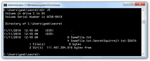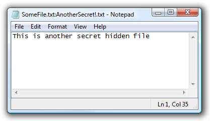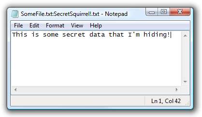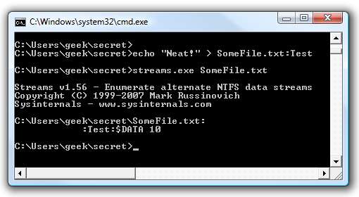 Opmerking: als je eenmaal een verborgen stream hebt gemaakt, maakt die stream niet precies deel uit van het bestand ... je kunt je bestand niet naar een andere locatie kopiëren en toegang krijgen tot de streams daar.