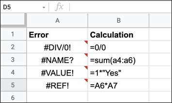 Er zijn een aantal fouten die kunnen verschijnen in Google Sheets of IFError kan aan. Als u bijvoorbeeld probeert een wiskundige functie toe te passen op een cel die tekst bevat (bijv.