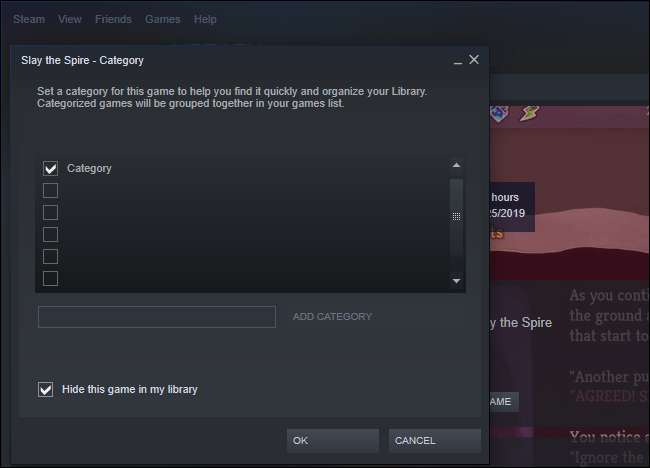 Om een Steam-spel te verbergen, zoekt u het in uw bibliotheek, klikt u er met de rechtermuisknop op en klikt u vervolgens op 'Categorieën instellen'.
