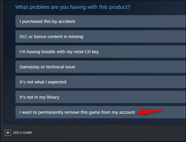 Klik op 'Ik wil deze game permanent van mijn account verwijderen'. (Als je het spel in de afgelopen twee weken hebt gekocht en het minder dan twee uur hebt gespeeld, kan dat ook retourneer het spel voor een terugbetaling vanaf hier.)