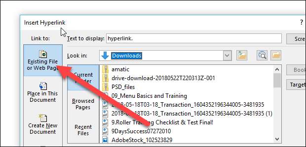 Selecteer links in het venster Hyperlink invoegen “Bestaand bestand of webpagina”.