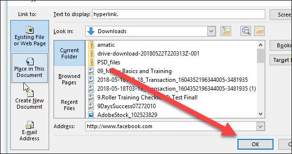 En klik vervolgens op "Ok" om uw hyperlink op te slaan.
