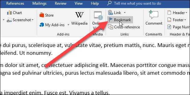 Klik op het tabblad Invoegen op de knop "Bladwijzer".