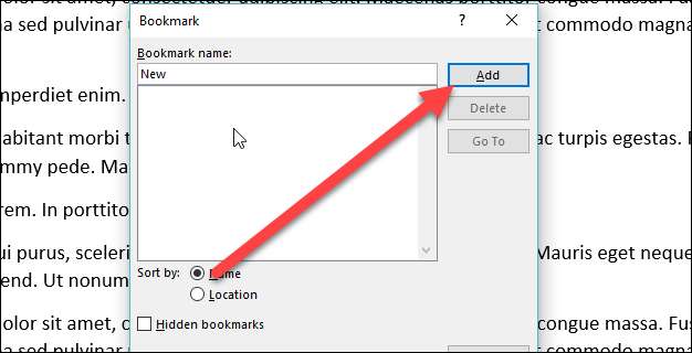 Typ in het bladwijzervenster de naam die u voor uw bladwijzer wilt. De naam moet beginnen met een letter, maar mag letters en cijfers bevatten (alleen geen spaties).