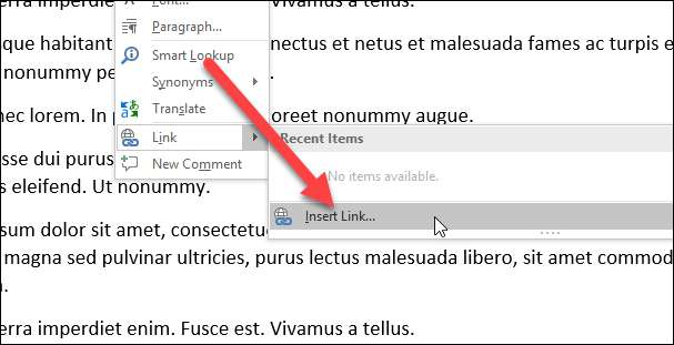 Klik met de rechtermuisknop op de geselecteerde tekst, wijs de optie "Link" aan en klik vervolgens op de opdracht "Link invoegen".
