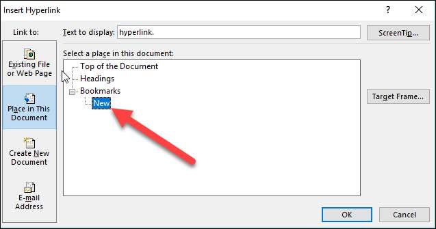 Aan de rechterkant ziet u een lijst met bladwijzers in het document. Selecteer degene die je wilt.