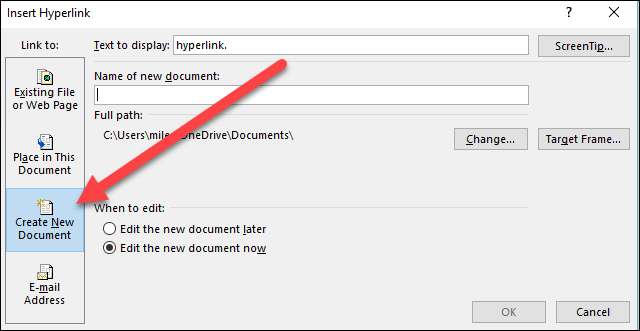Voeg een hyperlink in die een nieuw document maakt