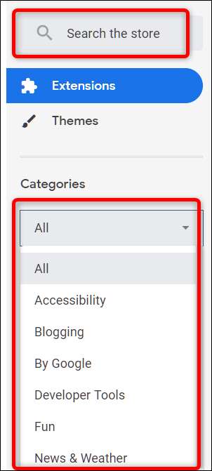 Ga naar de Chrome Webwinkel voor extensies en gebruik de zoekbalk of blader op categorie om de juiste extensie voor u te vinden. Als u niet zeker weet waar u moet beginnen, kan Google de winkel behoorlijk beheren en extensies aanbevelen op de voorpagina.