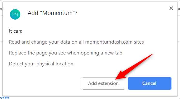 Er zal een venster verschijnen en u vragen om de rechten die nodig zijn voor de extensie. Lees de rechten zorgvuldig door en beslis of u deze extensie toegang wilt geven, en klik vervolgens op 'Extensie toevoegen'.