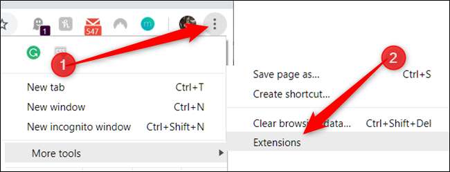 Om uw extensiepagina te openen, klikt u op het menupictogram (drie puntjes) in de rechterbovenhoek van Chrome, wijst u naar 'Meer tools' en klikt u vervolgens op 'Extensies'. U kunt ook typen