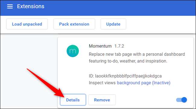 Blader door uw extensies om degene te vinden die u wilt beheren en klik op de knop "Details" om de instellingen te openen.