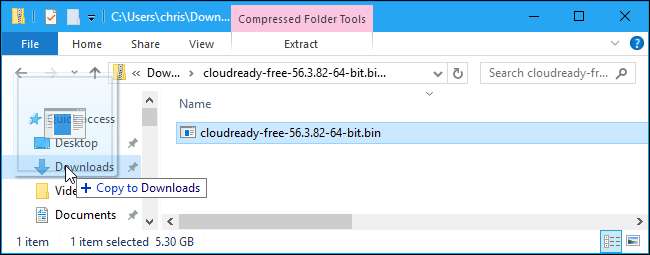 Pak het gedownloade .bin-bestand uit uit het .zip-bestand. In Windows kunt u dubbelklikken op het .zip-bestand om het te openen en het .bin-bestand erin naar een andere map slepen en neerzetten.