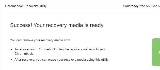 Klik door het hulpprogramma en klik op "Nu maken" om uw opstartbare USB-drive te maken. Als het klaar is, ziet u een bericht dat uw herstelmedium gereed is. Dit betekent dat uw opstartbare Neverware CloudReady USB-drive nu klaar is voor gebruik.