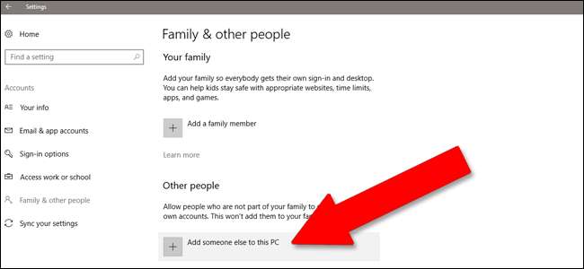 Klik op deze pagina van het menu Instellingen op "Familie en andere mensen" in de linkerkolom. (Maximaliseer het venster als u het niet kunt zien.)