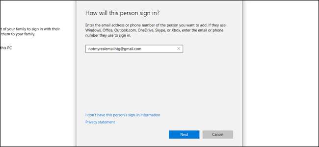 Standaard vraagt Windows 10 u om een Microsoft-account aan te maken wanneer u zich voor de eerste keer aanmeldt bij Windows. Maar als u liever een e-mail gebruikt die u ook daadwerkelijk gebruikt, weet u, e-mail , dat is ook een optie. Windows 10 accepteert nieuwe niet-Microsoft-e-mailaccounts bij de installatie en u kunt een nieuwe Windows-gebruiker maken met elk e-mailaccount.