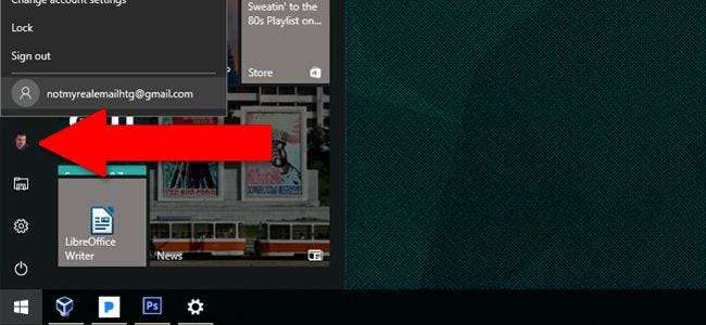 Klik nogmaals op de Start-knop. Klik op uw gebruikersprofielpictogram en klik vervolgens op de nieuwe gebruiker die u zojuist hebt gemaakt om voor de eerste keer in te loggen met het alternatieve e-mailadres.