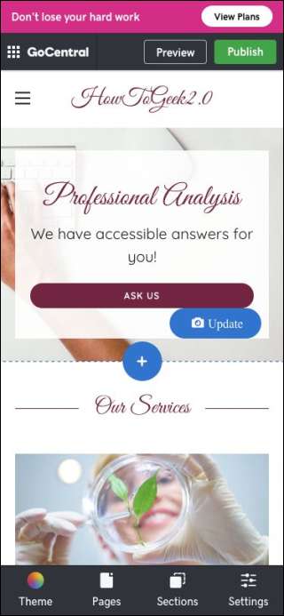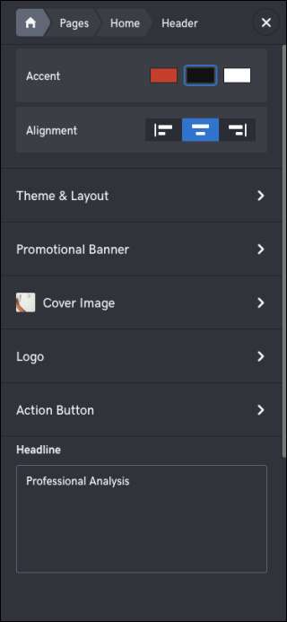 U kunt elk element bewerken om de stijl te wijzigen, nieuwe secties aan elke pagina toe te voegen en meerdere pagina's met een menubalk bovenaan in te stellen.