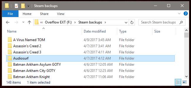 Het handmatig kopiëren van de bestanden uit de gamemap van Steam en ze vervolgens weer kopiëren wanneer je klaar bent om weer te spelen, is veel sneller en betrouwbaarder. Het cachingsysteem van Steam betekent dat het zelf doen geen nadeel heeft ten opzichte van de geïntegreerde tool van het programma. Als u een afzonderlijke back-up van uw gamebestanden wilt maken, vooral op een externe schijf voor het archiveren van een grote collectie van meer dan 100 GB of ruimte besparen op uw primaire systeemback-up, hier is hoe u het op de gemakkelijke manier kunt doen.