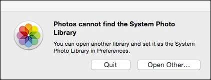 Open vervolgens Foto's, wat de volgende prompt zal oproepen. Klik op "Andere openen ..." om een bestaande bibliotheek te zoeken of een nieuwe te maken.