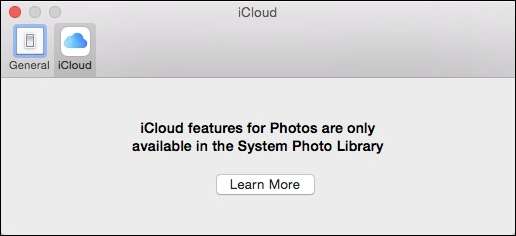 Het is belangrijk op te merken dat u geen iCloud-integratie en het kan worden uitgeschakeld als je wilt in de voorkeuren . Je kunt je nieuwe fotobibliotheek nooit converteren naar een systeembibliotheek en al je foto's gewoon lokaal opslaan (of op Dropbox of OneDrive of een andere clouddrive).