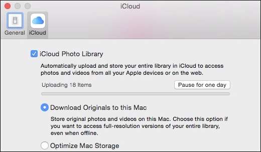 Als u nu op het tabblad iCloud klikt, ziet u dat uw bestanden worden gesynchroniseerd en worden teruggezet naar uw nieuwe fotobibliotheek zodra deze is gedownload, terwijl alles wat u toevoegt, wordt geüpload.