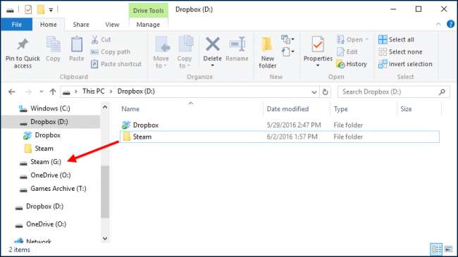 In dit geval staat onze Steam-bibliotheek op onze D: -schijf, maar laten we zeggen dat we deze willen verplaatsen naar onze G: -schijf, een SSD die we speciaal voor games hebben geïnstalleerd. Voordat u iets doet, moet u Steam afsluiten. Vervolgens sleept u alleen de hele Steam-map naar de nieuwe locatie.