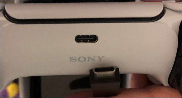 Als u uw PlayStation 5 voor de eerste keer inschakelt, moet u uw DualSense-controller op uw console met een USB-koord verbinden, omdat u het nodig hebt om uw account in te stellen. Een snoer is inbegrepen bij de console, dus sluit het aan op de USB-poort aan de voorkant van de console.