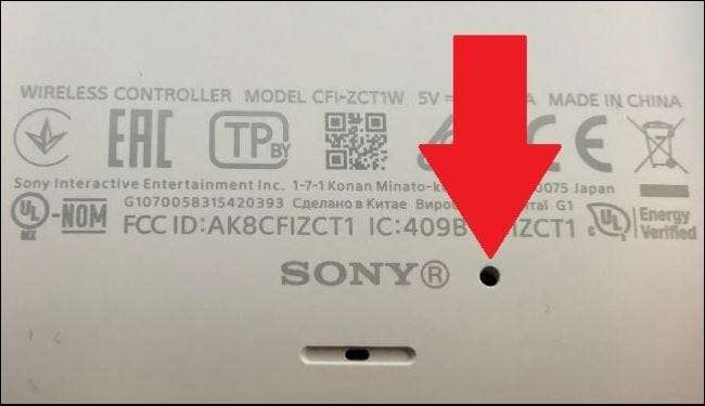 U moet op de RESET-knop drukken, die op de achterkant van de controller naast het woord "SONY" is. U moet een naald of een uitgevouwen paperclip gebruiken om op de knop te drukken.